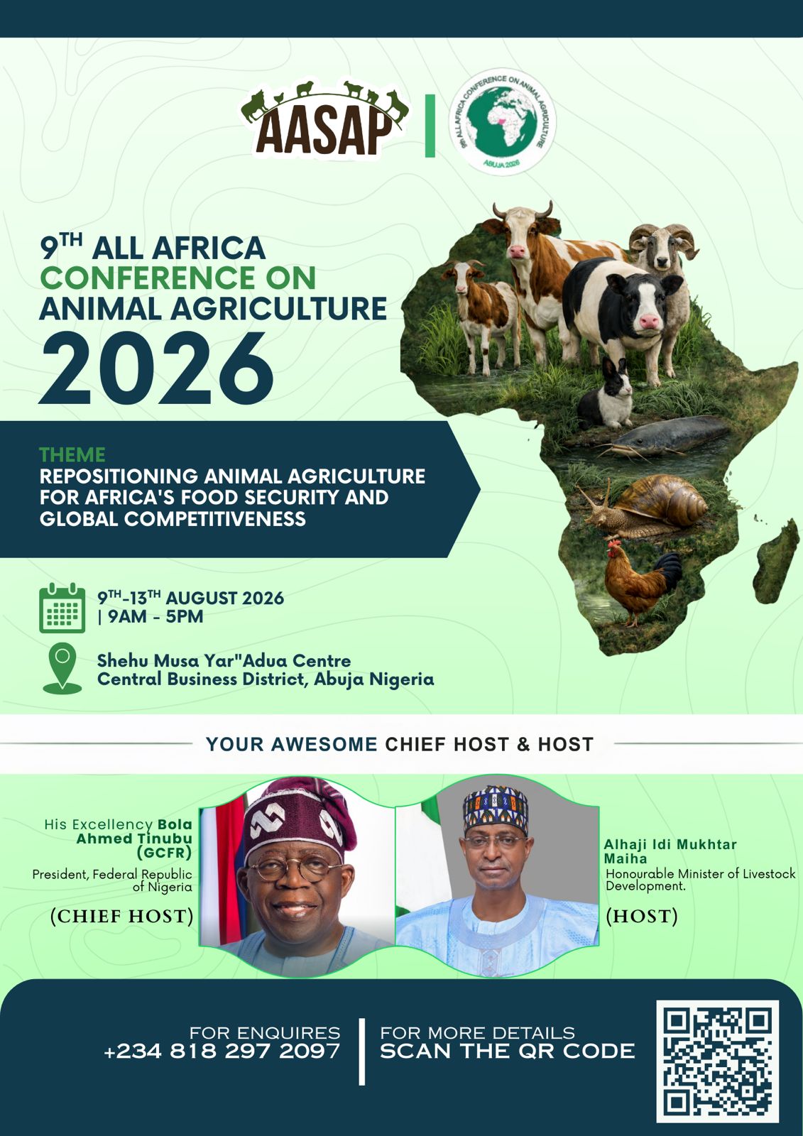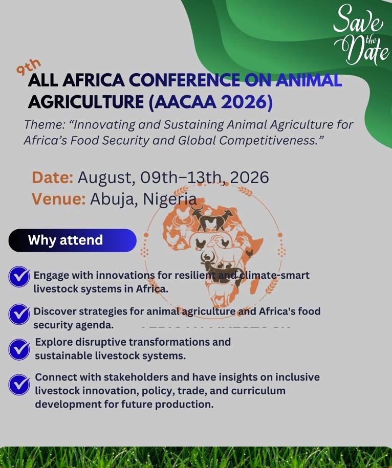The 9th All Africa Conference of Animal Agriculture (AACAA) will be hosted in Abuja, Nigeria from 09th – 13th August 2026 under the theme: